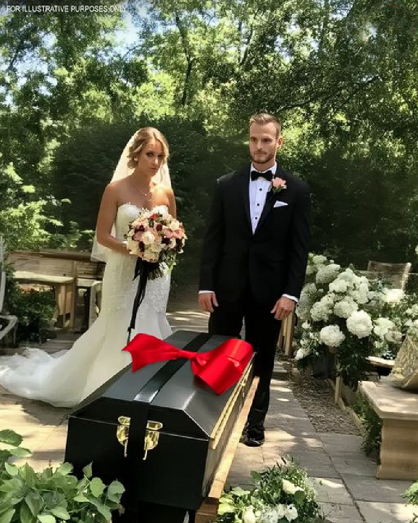 A COFFIN DECORATED WITH A BOW WAS BROUGHT TO OUR WEDDING DURING THE CEREMONY – I NEARLY FAINTED WHEN IT WAS OPENED