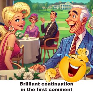Bob, a 70-year-old, extremely wealthy widower, shows up at the Country Club with a breathtakingly beautiful and very sexy 25-year-old blonde-haired woman who knocks everyone’s socks off…