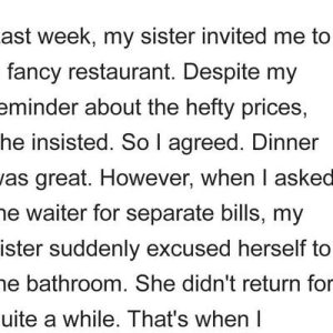 After enjoying their meal with the sister’s boyfriend, things took an unexpected turn. Sister’s Invite and Upscale Dining The Redditor was thrilled when her sister, who had…
