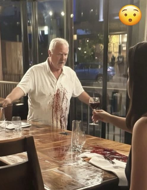 She threw her wine glass at me. I barely had time to react before the red liquid drenched my shirt, seeping into my jacket.