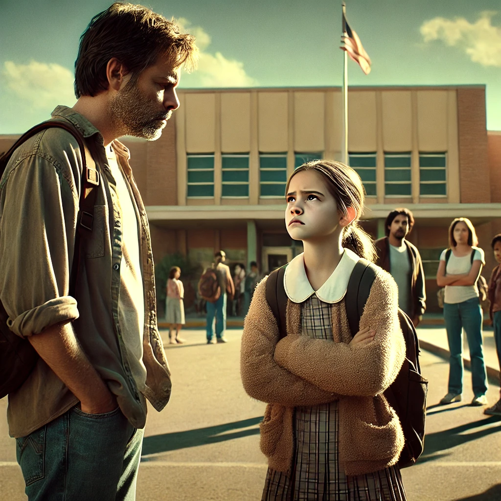 But Mrs. Evans was undeterred. She took Lily’s hand, gave Tom a stern look, and said, “I insist. This won’t take long.” She guided Lily back into the school building, her pulse racing. Once they were safely inside her classroom, she closed the door and turned to Lily. “Sweetheart, can you tell me what’s going on? Are you scared?”