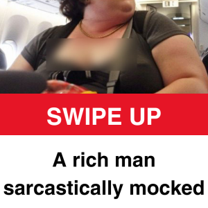 A wealthy man starts complaining to the flight attendant about being sat next to an obese woman in first class because he is irritated.