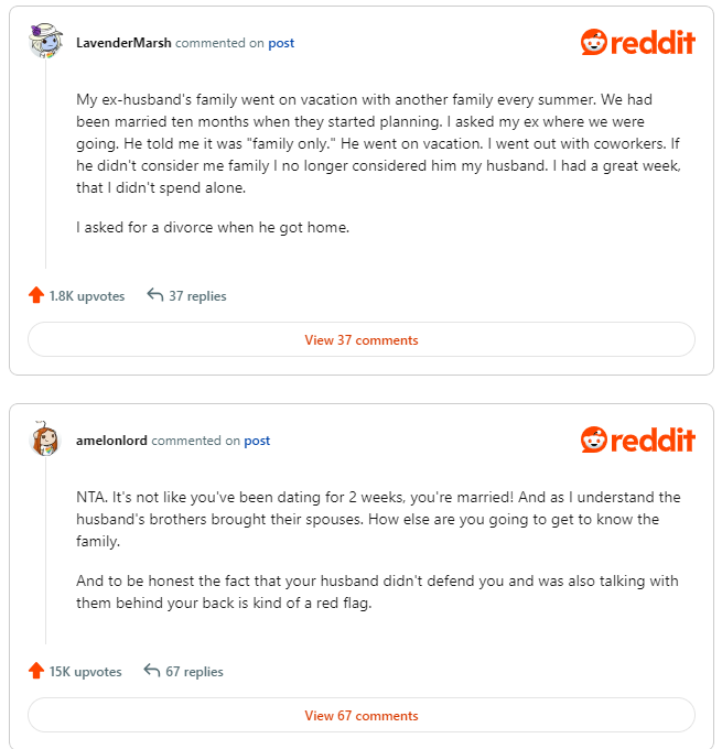 “His family arranged for the vacation last week. I out of curiosity asked if I could come. My husband felt hasitant but I told him it’d be a great opportunities to get to know his family better. He agreed to take me and his family were surprised to see me but still welcomed me.” OP wrote in her post.