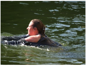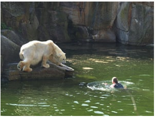 Mandy K was in major trouble for timing her jump at feeding time. After getting into close touch with the polar bears, she sustained injuries to her back, arms, and legs.